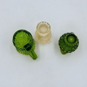LE Smith Hobstar Daisy Button Avocado Green Petite Small Creamers Pitchers 3PC