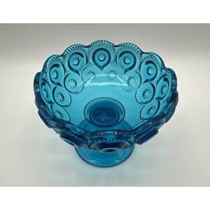 Beautiful vintage LE Smith Moon & Stars blue pedestal glass compote candy dish. Measures approximately 3.75” tall and 4.5” in diameter. Good condition, no chips or cracks.