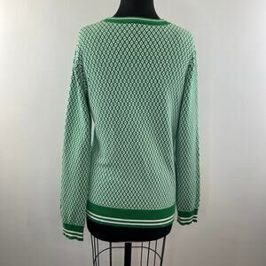 LE TIGRE Green White Diamond Print Cotton V-Neck Button Down Cardigan Sweater XL