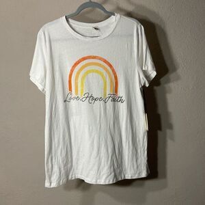 LE Womens Graphic Rainbow Short Sleeve Tee White Size Large NWT