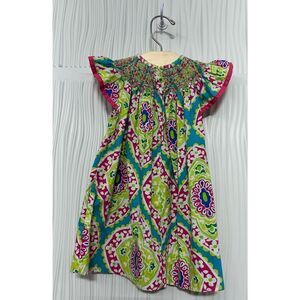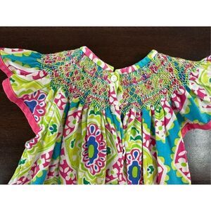 LE ZA ME MULTI-COLOR PRINT SMOCKED DRESS -12M