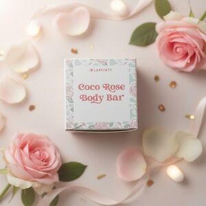 Coco Rose Body Bar: A signature LEAFINITY blend featuring the delicate, floral notes of Moroccan rose and the deep hydration of virgin coconut oil. This bar provides a gentle, creamy lather that softens the skin while leaving a subtle, tropical scent.