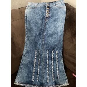“LEAH” Medium Wash Blue Jean Long Skirt size Medium Small (34MX)