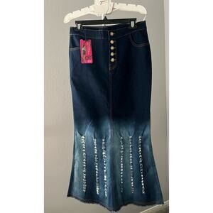 “LEAH” Ombre Wash Blue Jean Long Skirt size Small (32MX)