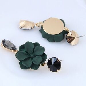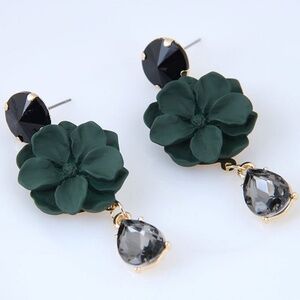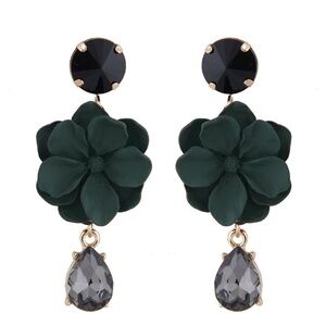 **LEANDRA* Dk. Green Flower Gem Dangle Earrings