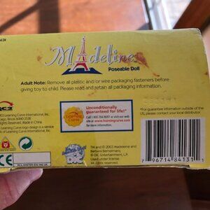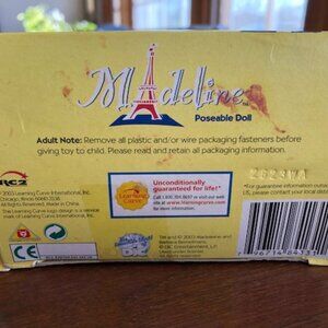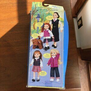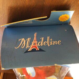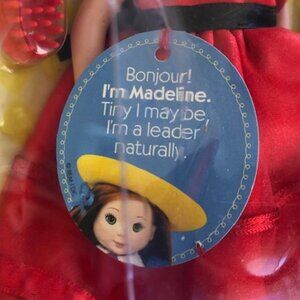 Madeline is dressed in her red holiday dress with matching purse, black shoes and a hair ribbon.
