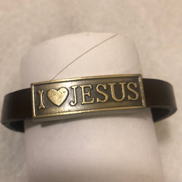 LEATHER I 💛JESUS BRACELET DARK BROWN LEATHER WITH METAL PLATE & METAL CLOSURE NEW NOT ADJUSTABLE THANK YOU
