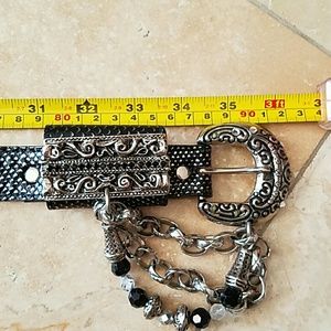 BLACK/SILVER LEATHER BELT