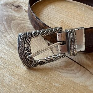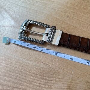 LEATHER BELT WOMENS BROWN CROC EMBOSSED WESTERN BOHO VTG INSPIRED INTRICATE