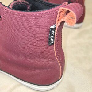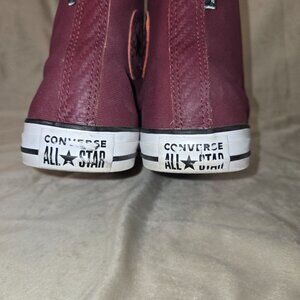 LEATHER CHUCK TAYLOR CONVERSE ALL STAR HIGH TOP UNISEX MEN'S 8.5 BURGUNDY WITH BLACK LACES, GUC