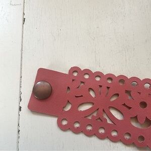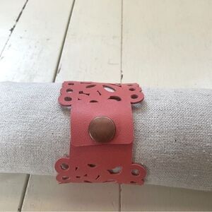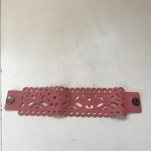 LEATHER Cuff Handmade Cutout Floral Salmon Color