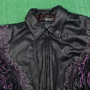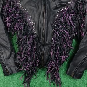 LEATHER GALLERY BLACK TASSEL TASSLES BIKER SOUTHWESTERN JACKET WOMENS SIZE 2XL