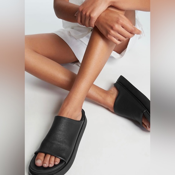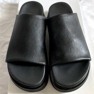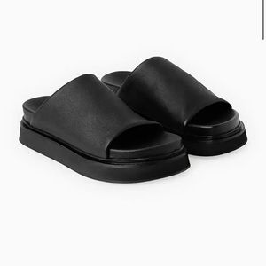 LEATHER PLATFORM SLIDES