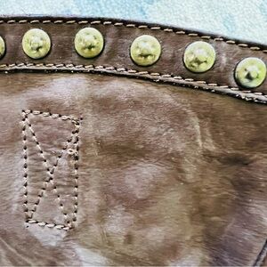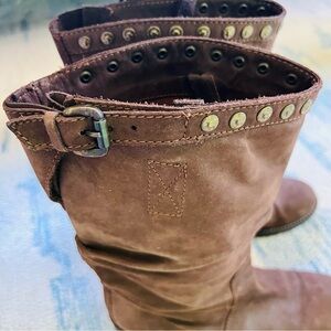 LEATHER SLOUCHY PULL ON STUDDED MOTO BOOTS SIZE 8.5 BROWN