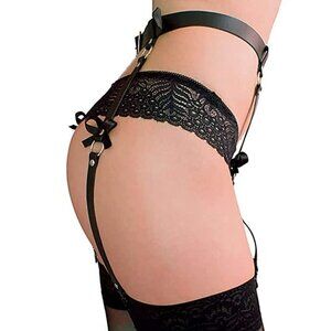 NWT Leather Strap Waist Bow Leg Pantyhose Clip Harness Garter Bondage Cosplay Rave NWT