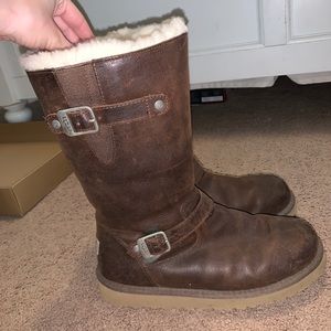 My FAV pair of Uggs that I’ve owned. Don’t wear them so I’ve decided to sell. Scratches show because of flash. The best shoes for up north in the snow. Kid size 6 = women’s size 8 (that’s my size) bought in kids because they don’t have women’s.