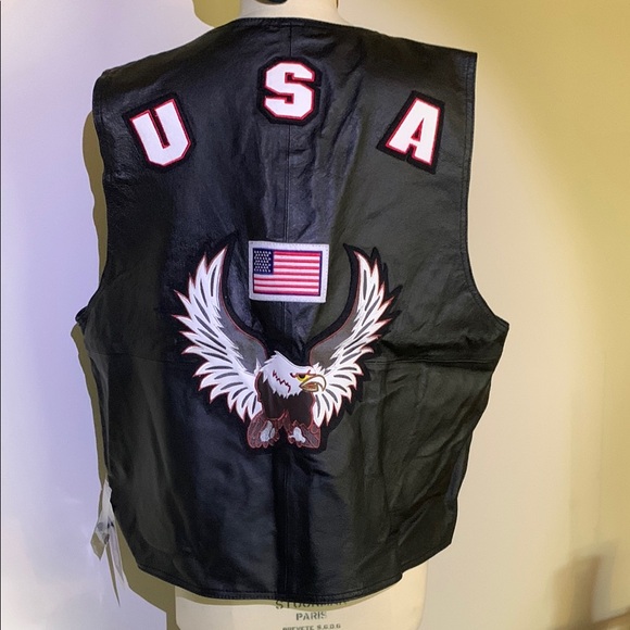 LEATHER USA - Men's USA FLAG & EAGLE Black Leather Vest Sz 2XL NWT