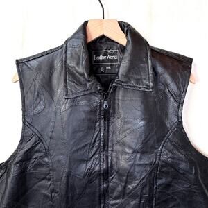 LEATHER WORKS Patchwork Vest Unisex XXXL Motorcycle Riding Black Biker Moto Zip