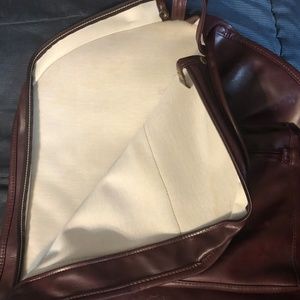 BURGUNDY COLOR GARMENT BAG FOR TRAVEL...I USED IT 2 TIMES AND WORKED GREAT..2 LARGE POCKETS ZIPPERS WORKS GREAT