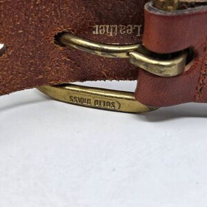 LEATHER MAN LTD. BROWN BELT NAUTICAL FLAGS BRASS BUCKLE HAND MADE SIZE 34