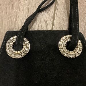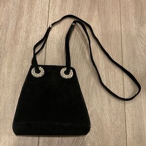 LEATHEROCK Crossbody Bag Black Leather with Rhinestone Accents
