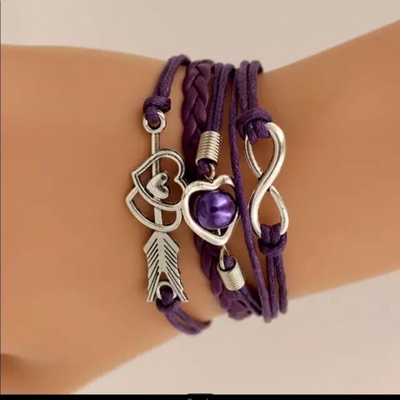 Leather Bracelet with Infinity, Love Heart, and Friendship Pearl.