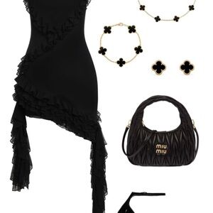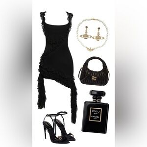 Elevate your style with this elegant asymmetrical black dress. Featuring cascading ruffles, it's perfect for any sophisticated occasion.