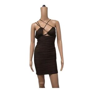 LEAU Seoul Strap Cutout Mesh Bodycon Midi Dress Brown Small NWT Sexy