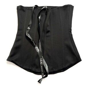 Description from retailer: Look and feel luxurious in our Sphynx Satin Corset Top. This strapless black corset top designed to sculpt and shape your body like no other while cinching at the waist for an ultra hourglass silhouette. The luxe satin custom-made satin material is double layered complimented by the longline, rounded hem for an ultra feminine fit. We use our custom-made LEAU satin fabric meaning you won't find a fabric or a fit like this anywhere else.