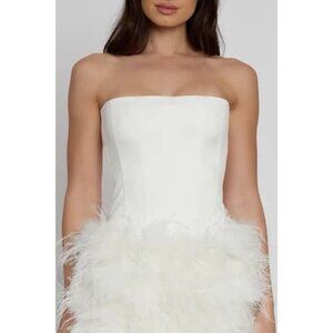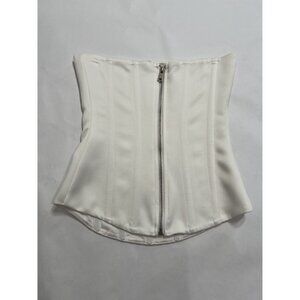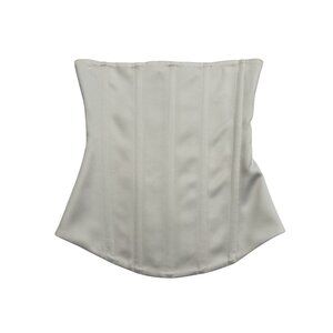 Description from retailer: Look and feel luxurious in our Sphynx Satin Corset Top. This strapless white corset top designed to sculpt and shape your body like no other while cinching at the waist for an ultra hourglass silhouette. The luxe satin custom-made satin material is double layered complimented by the longline, rounded hem for an ultra feminine fit. We use our custom-made LEAU satin fabric meaning you won't find a fabric or a fit like this anywhere else.