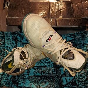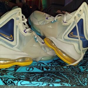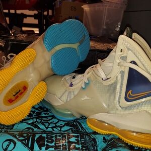 Stylish and comfortable Nike shoes in cream and blue. Perfect for active play and everyday wear.