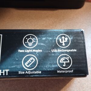 LED belt featuring vibrant multicolor lights. Perfect for visibility at night. 3 different lights and recharges using USB cord.