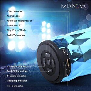 🧿【Long Play Time】▶MIANOVA speaker can play with 10 hours when LED off, 8 hours when LED lights active.It is provided by the high quality 2000mAh Li-ion battery.