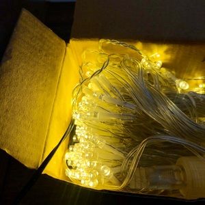 LED warm white curtain string lights that would be perfect for creating a cozy bedroom! These are brand new. Only reason I’m selling is because they were too long for my windows.
