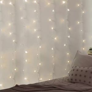 Light up with these LED Curtain Lights featuring 96 warm white LED lights with 8 new light modes - combination, in-wave, sequential, slow glow, chasing, slow fade, twinkle and steady on. These LED lights are battery powered, require little assembly and are sure to add a festive spirit to any to any space