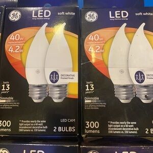 Eight 2-Packs LED Cam 40w Replacement Bulbs Uses 4.2 w. Dimmable 300 Lumens. Decorative frosted Finish. 16 Total Bulbs