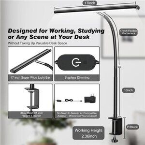 Ample Illumination: With a 17-inch extra-wide lamp bar and a maximum compatible work height of 31 inches, this desk lamp can fully illuminate your workspace, making it suitable for use with various monitor sizes.