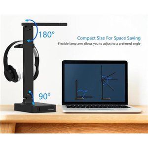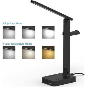 LED Desk Lamp with Headphone Stand, Desk Light with USB Charging Port + Outlet
