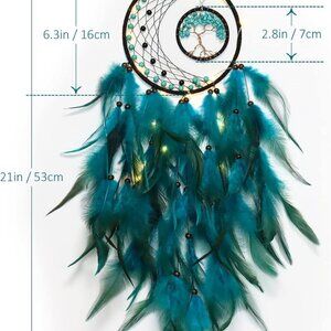 SIZE&QUALITY : Diameter: 16cm/6.3 inch, total length: 53cm/21 inch.This Light Up Dream Catcher is totally handmade with soft natural feathers, metal circle, elegant beads and Crystal Stone.