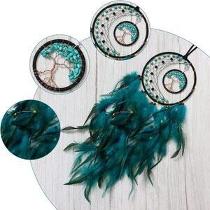 LED Dream Catcher Light Up Tree of Life Dreamcatcher with Healing Crystal Stone