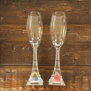 LED Eiffel Tower Stem Champagne Flutes. Set of 2. EUC.