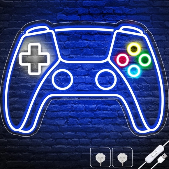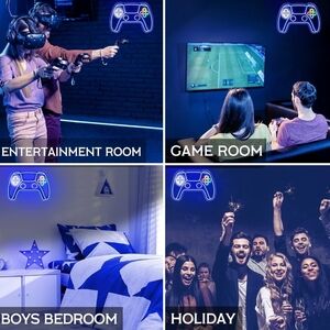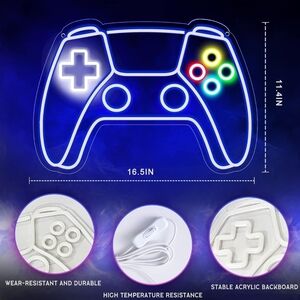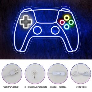Brighten up your gaming space with this LED gaming controller neon sign. Featuring vibrant blue, green, red, and yellow colors, it's perfect for any gamer. Easy to install and adds a fun touch to your decor. USB powered gamer, gifts for teens.Boys , kids any age of your gamer enthusiast!!!