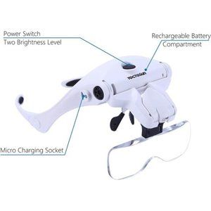 LED Head Magnifier,Rechargeable Hands Free Headband Magnifying Glasses with2 Led