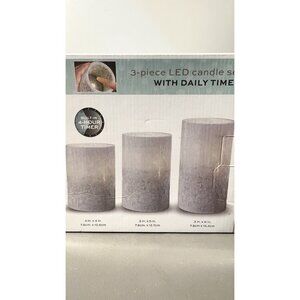 LED Light Gray Candle Set 3 Pc Flameless Wax Order Home w/ Daily Timer