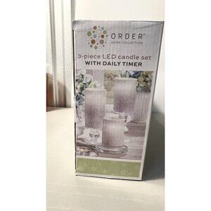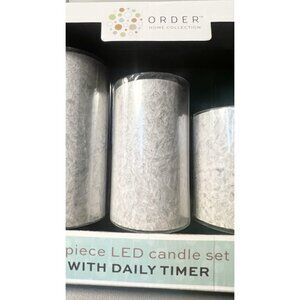 LED Light Gray Candle Set 3 Pc Flameless Wax Order Home w/ Daily Timer. Condition is New. Shipped with USPS Ground Advantage.