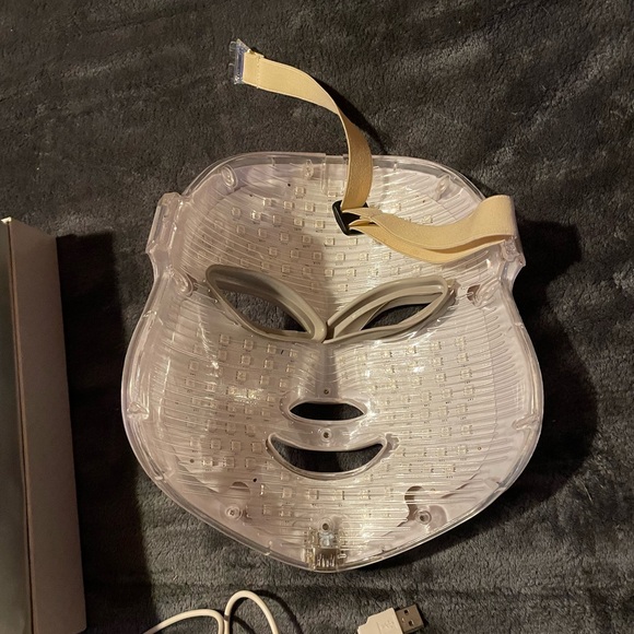 LED light therapy mask with adjustable strap. Perfect for skincare routines.