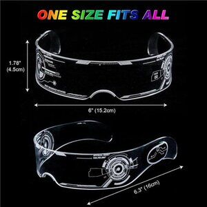 *Multi-colored In One--- The cyberpunk glasses(2 modes) have 7 controllable lights and 7 gradient flashing colors when in blinking mode. The biggest feature of our LED glasses is bilateral control, different colors on both sides will be cooler. (Warm tips: Press the button to turn on, change color/ mode and turn off. In sequence will be: turning on, blue, green, red, sky blue, yellow, purple, white, 7 colors blinking and turning off)