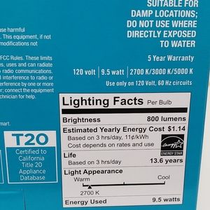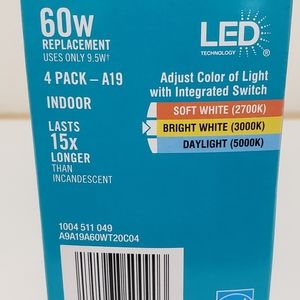 5 boxes left! NEW energy efficient LED bulbs. (1 Box=4 Bulbs) Each bulb has 3 different light settings (built-in switch) so you can change/set it to Soft, Bright, Or Daylight.