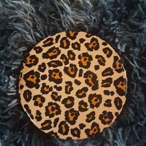 This stylish 5" leopard print compact mirror features LED lighting for flawless touch-ups anywhere. Its sleek design is perfect for your purse. Requires 3 AAA batteries, included.