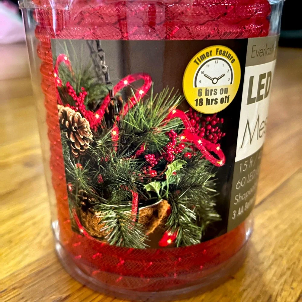 Red Mesh Rope Lights 60 fairy bulbs 15 ft Indoor require 3 AA batteries not included decorate centerpieces posts poles railings windows or tree. New never opened